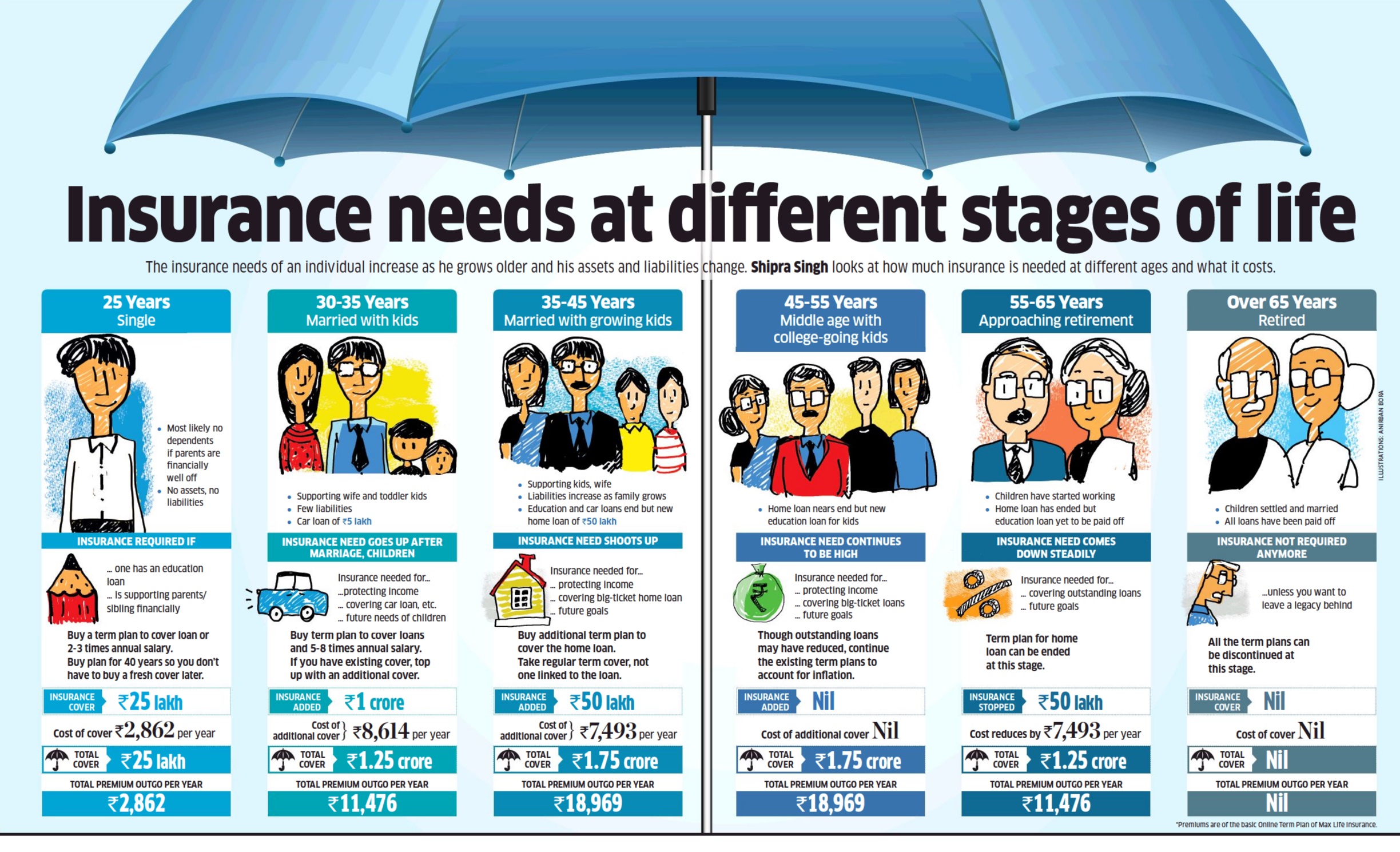 Moreover, retirement, an age when every individual has almost fulfilled his responsibilities and looks forward to relaxing can be painful if not planned properly. Have you considered the increasing inflation and taxes? Will your investment offer you attractive returns under such circumstances? Will it take care of your family after you? An insurance policy will definitely take care of these and a lot more.